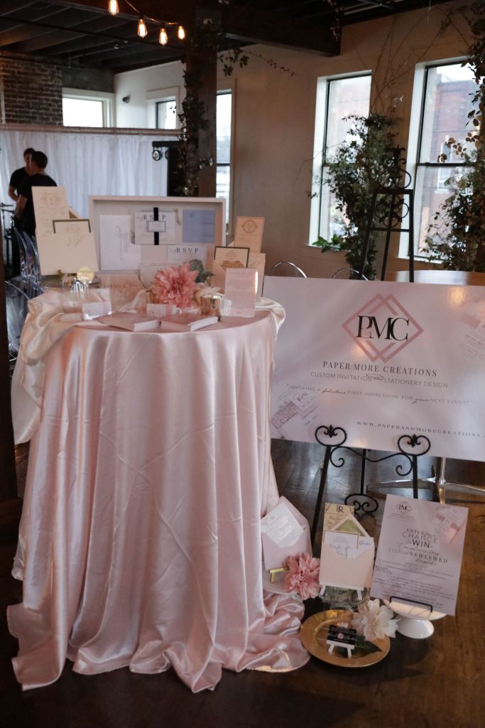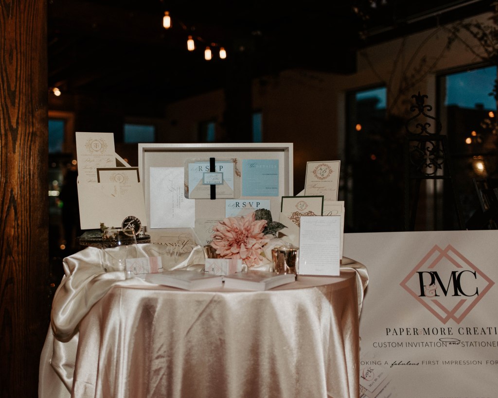 As guests entered the venue, they received swag bags with amazing wedding planning gifts and guides to help them on their wedding planning journeys. Guests also had the chance to visit the participating wedding pros in The Tunnel of Love, which was a great feature, as we met with and introduced PMC to just about everyone. Guests were able to experience the event’s invitation, as well as, see first-hand just some of our previous work we shared. Great connections were made in The Tunnel of Love.